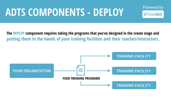This component requires taking the programs that you’ve designed in the Create stage and putting them in the hands of your training facilities and their coaches/instructors.
