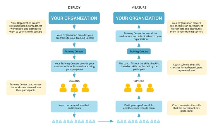 You’ll want to distribute the skills checklists that you’ve created to your training centers or directly to your coaches. A spreadsheet such as the ones that you can download in the paragraph above are satisfactory however, the distribution is most effective with an online system designed for this purpose.