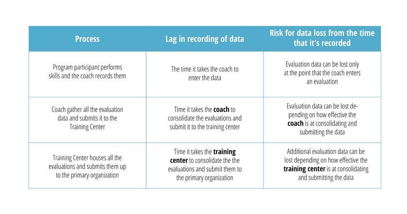 From the time that the coach evaluates a participant to the time that the coach enters the evaluation online, that individual skill evaluation travels up the chain without lag.